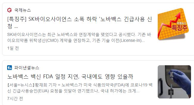 기사내용 요약 식약처 "FDA 승인 일정과 별개" 【서울=뉴시스】황재희 기자 = 노바백스가 미국 식품의약국(FDA)에 코로나19 백신 긴급사용승인(EUA) 요청을 잇달아 연기했으나, 국내 허가에는 크게