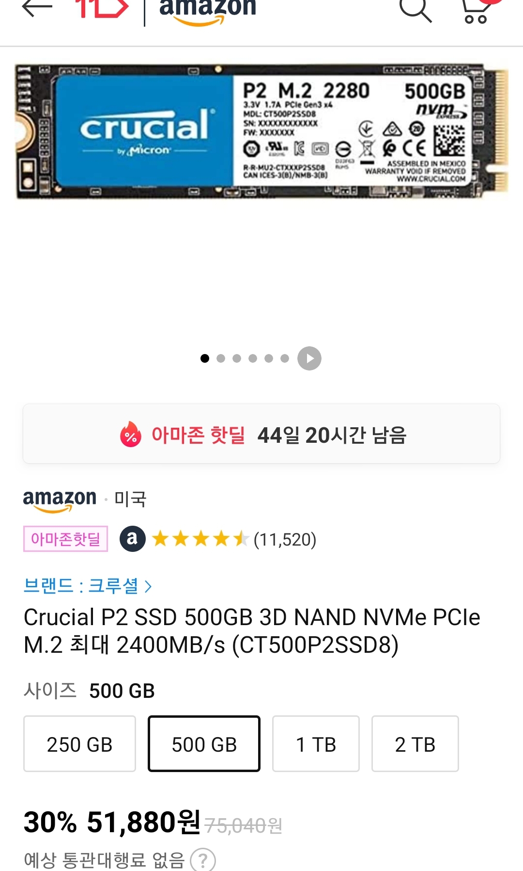 (11번가-아마존) 크루셜 P2 500GB NVMe QLC SSD (~4.7만원/우주패스)/:/ 제품정보 본문
