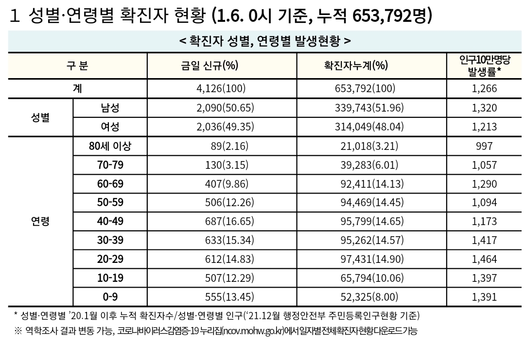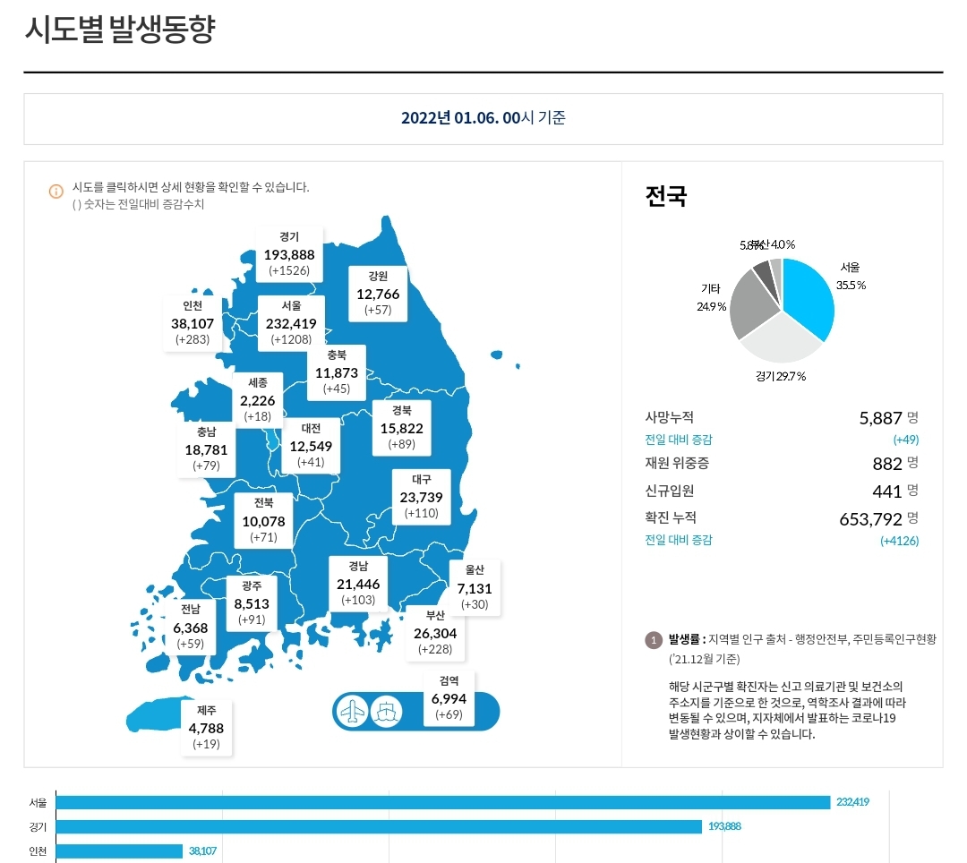코로나19집계(2022.1.6. 0시기준):4126명 본문