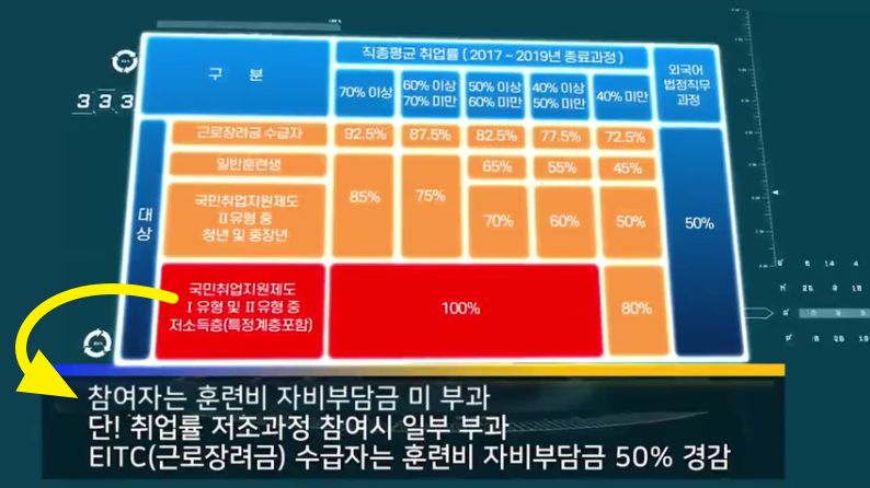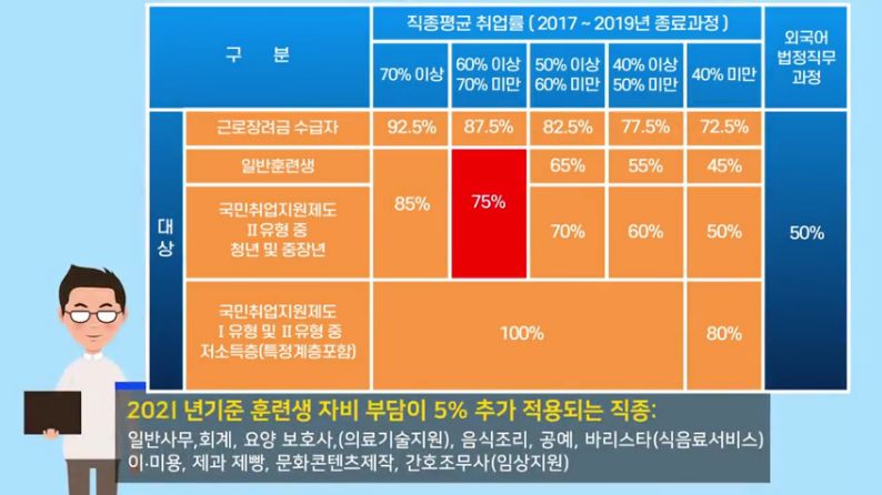 신청할 수 있는 훈련과정과 훈련비 국가지원비율