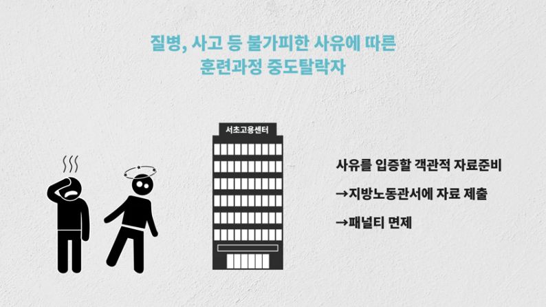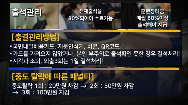 장려금수령대상자가 아니라 해도 페널티가 있다. 결석이 많으면 수료하지 못하고, 중도탈락하면 계좌가 감액된다.