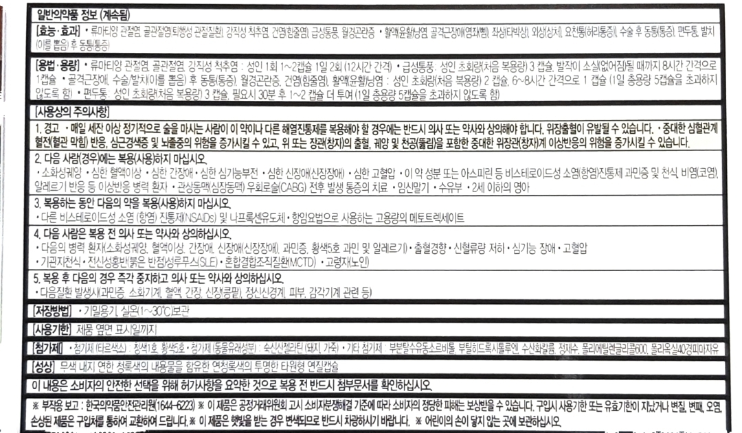 * 이런 항염(소염)진통제는 만성적인 통증이 있을 경우 습관적으로 복용하기 쉬우니 사용할 때 주의할 것.