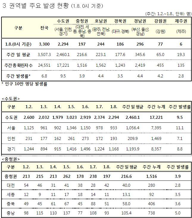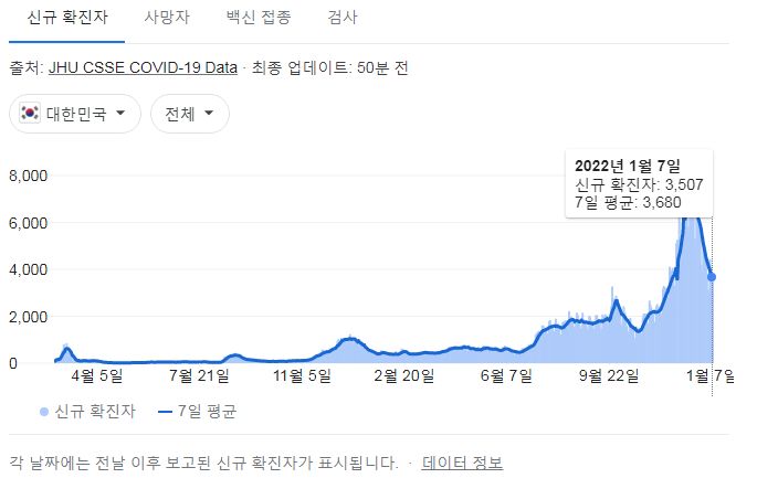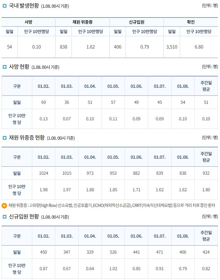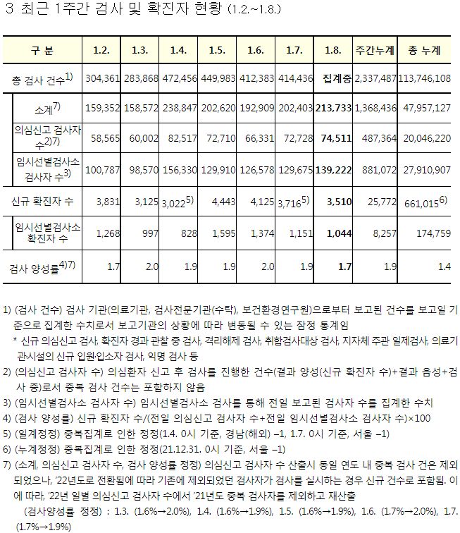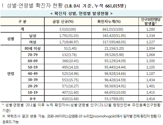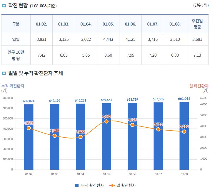 코로나19집계(2022.1.8. 0시기준): 3510명 ★ 본문
