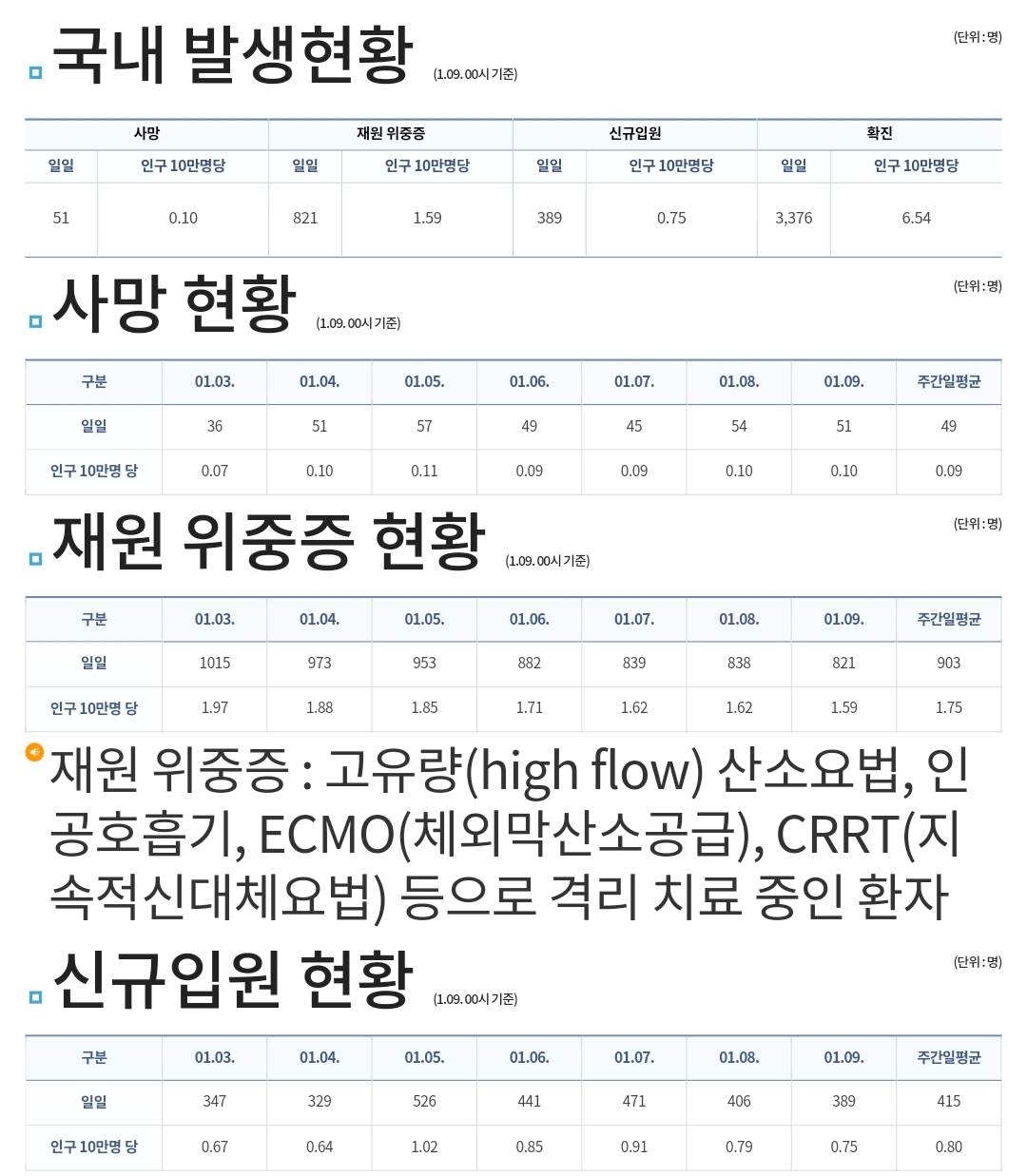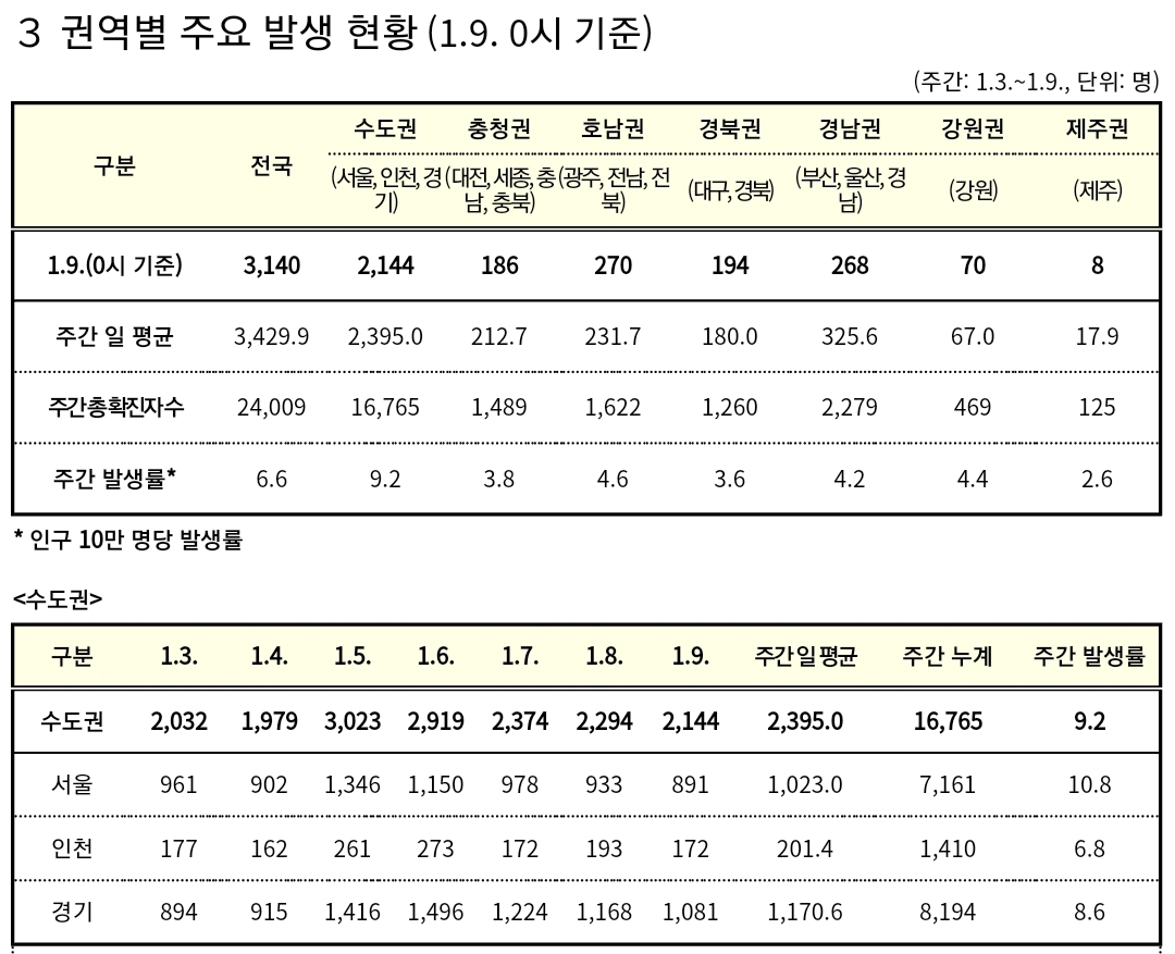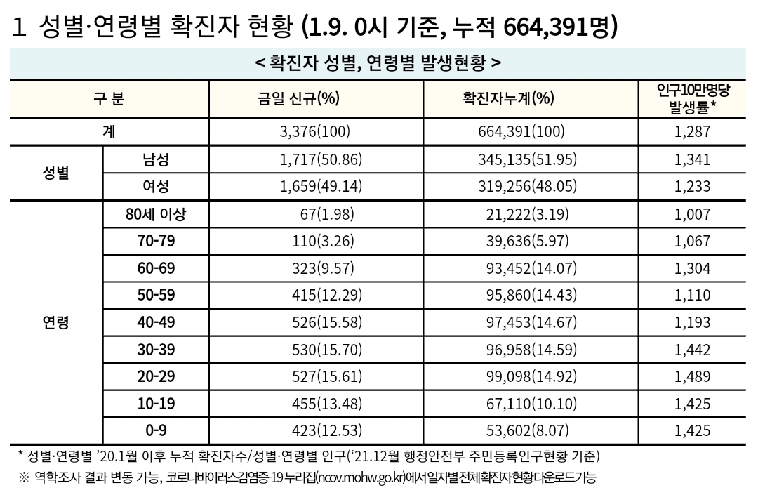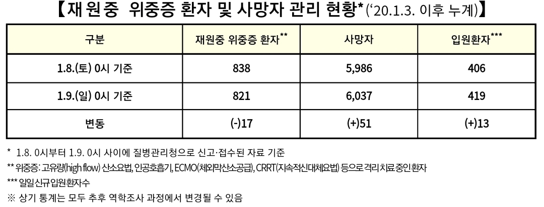코로나19집계(2022.1.9. 0시기준): 3376명/:/ 주간 병상운용 등 본문