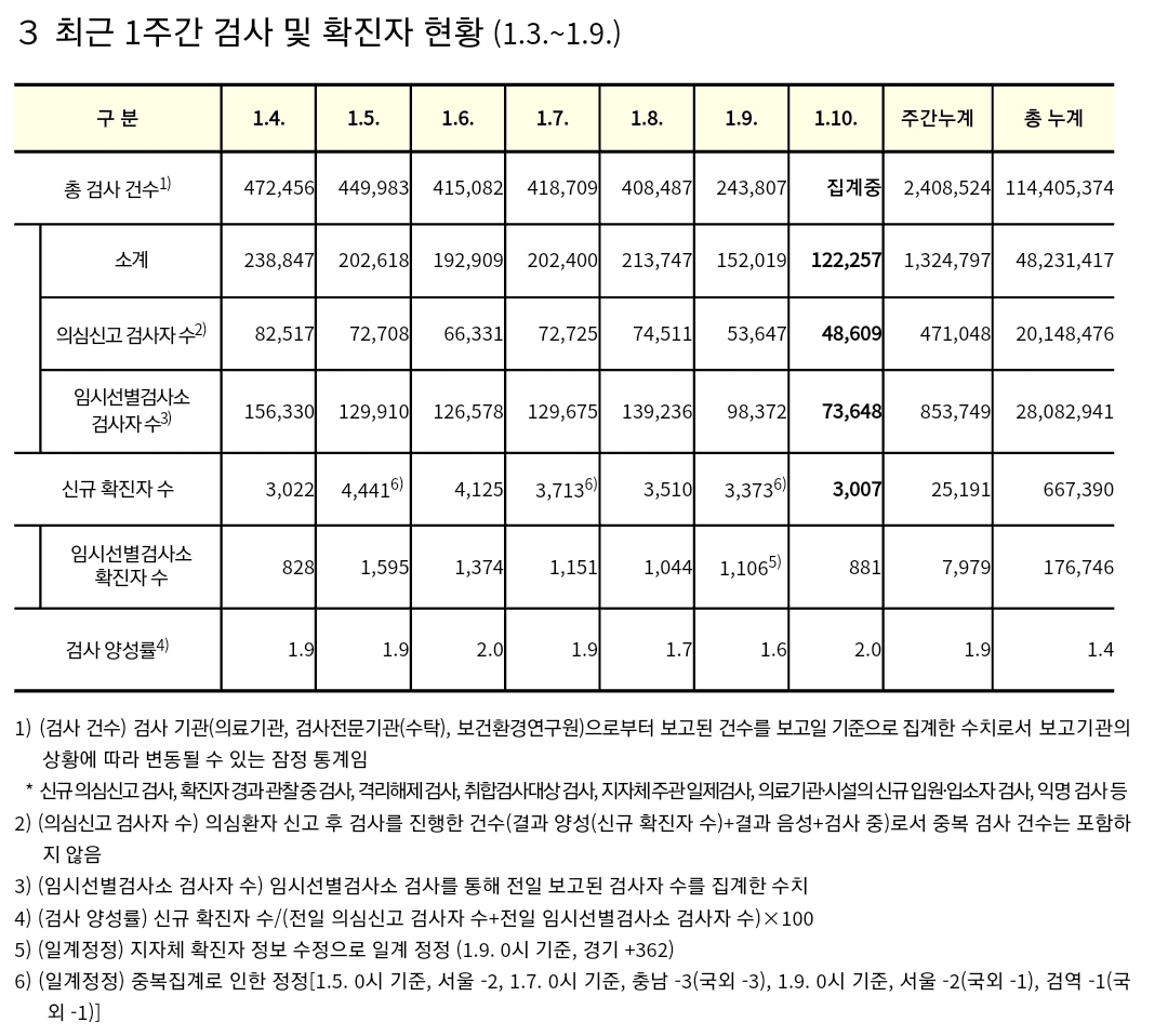 | 코로나19집계(2022.1.10. 0시기준): 3007명 (0) | 2022.01.10 |