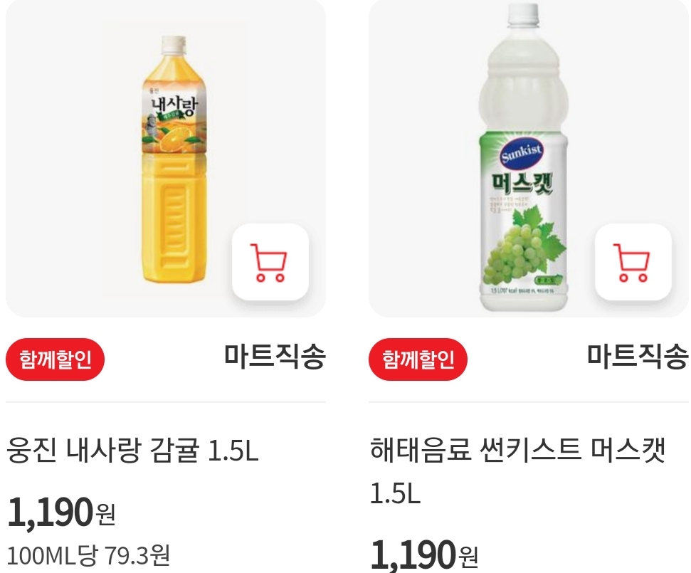 ※ 자체상표는 아니지만 여러 브랜드의 과즙50%이하 주스 종류와,