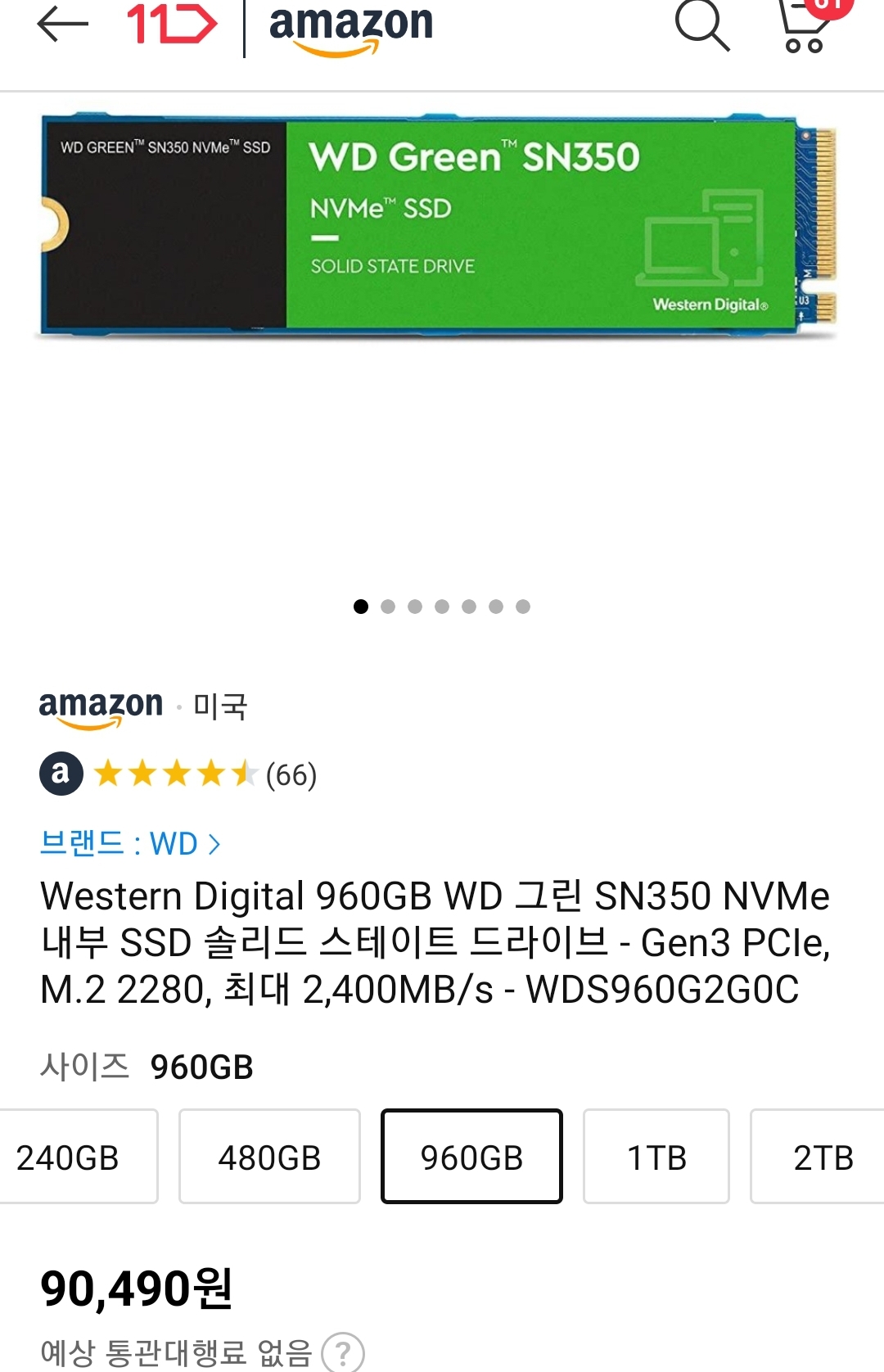 (11번가-아마존) WD 그린 SN350 960GB NVMe SSD (~ 7.6만원/우주패스, ~8.1만원/일반) 본문