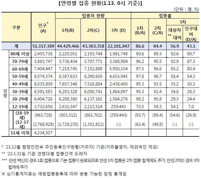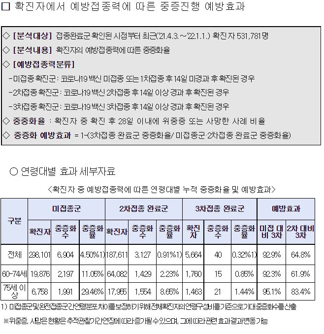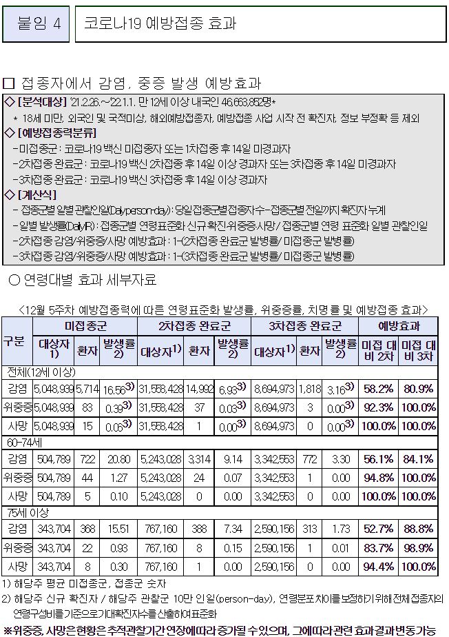 코로나19 예방접종상황 및 효과분석(2022.1.13) 본문