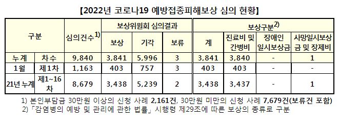 2022년 제1차 코로나19 예방접종피해보상 전문위원회 결과