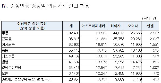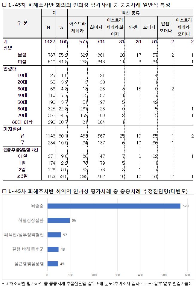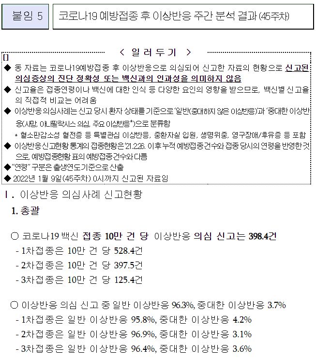 코로나19, 이상반응 신고현황 주간 분석결과(45주차) (2022.1.13) 본문