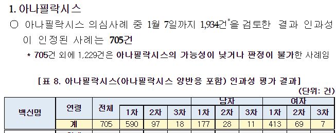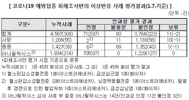 예방접종 피해조사반의 이상반응 사례평가 결과 분석 (~1.7.)