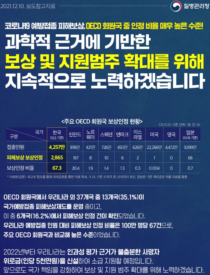 예방접종피해보상 전문위원회(위원장: 서은숙)는 1월 11일 제1차 코로나19 예방접종피해보상 전문위원회(이하 “보상위원회”)를 열고 코로나19 예방접종 후 이상반응으로 피해보상 신청된 사례 총 1,163건을 심의.