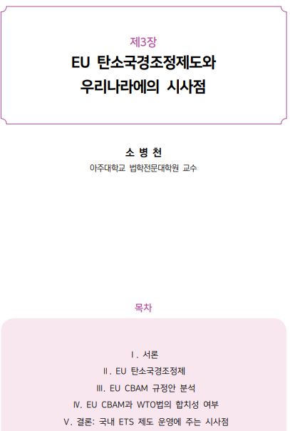 제3장 EU 탄소국경조정제도와 우리나라에의 시사점 - 소병천 아주대학교 법학전문대학원 교수