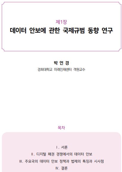 제1장 데이터 안보에 관한 국제규범 동향 연구 - 박언경 경희대학교 미래인재센터 객원교수