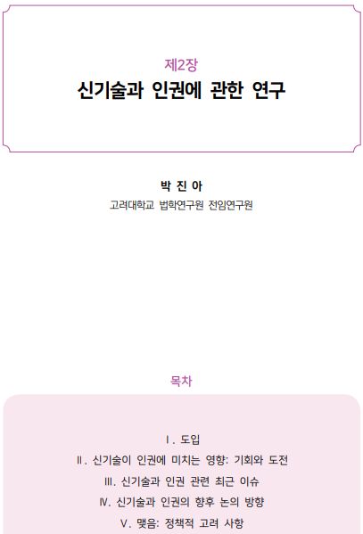 신기술이 인권에 미칠 영향에 국제사회 전체가 이토록 관심을 갖는 것은 그것이 단순히 새로운 기술이어서가 아니라 인류 사회 전반에 걸쳐 급격한 변화와 혁신을 가져올 파급력이 있는 새로운 디지털 기술이기 때문이다(......)