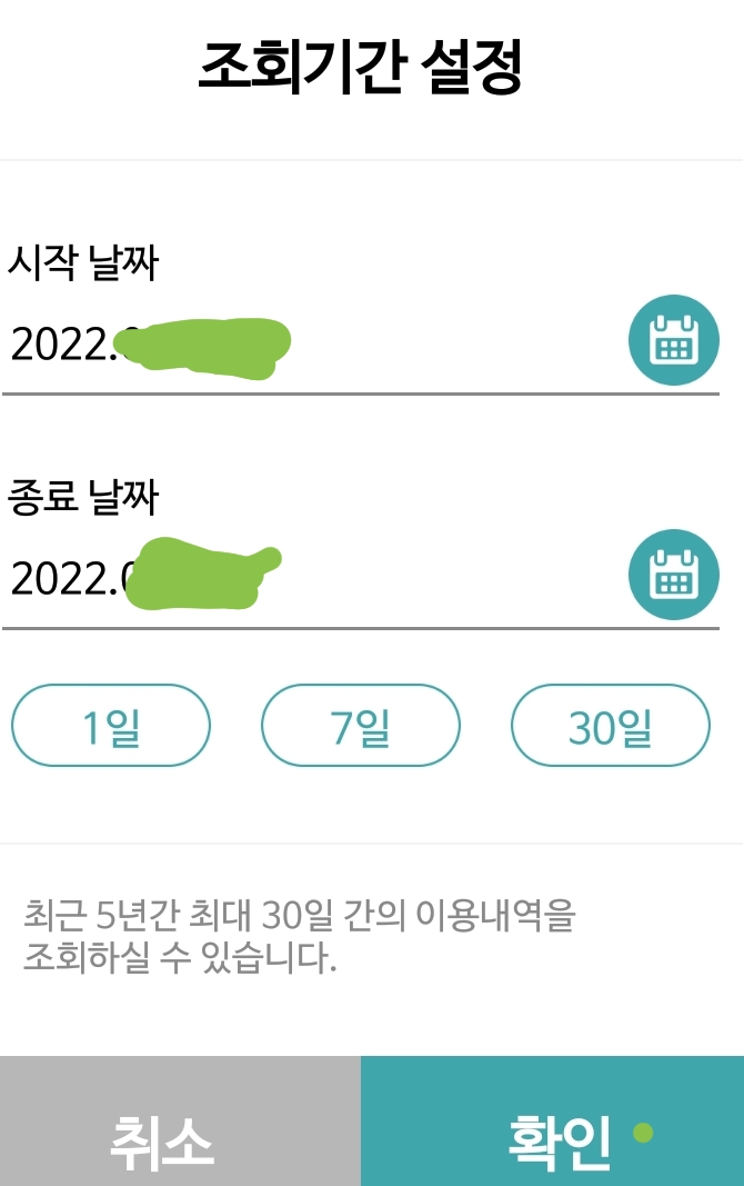 ㅡ 최근 30일동안의 이용내역(결제내역)