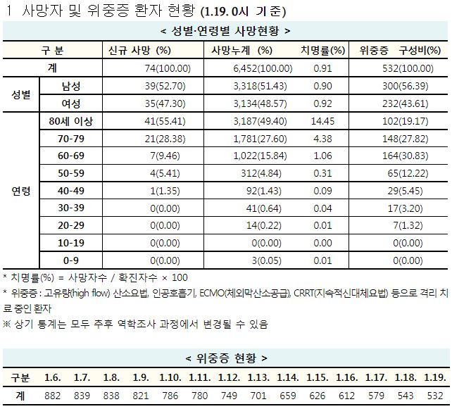 최근 1~2달간 치명률 항목(column)을 추가해 표시해주면 어떨까요?