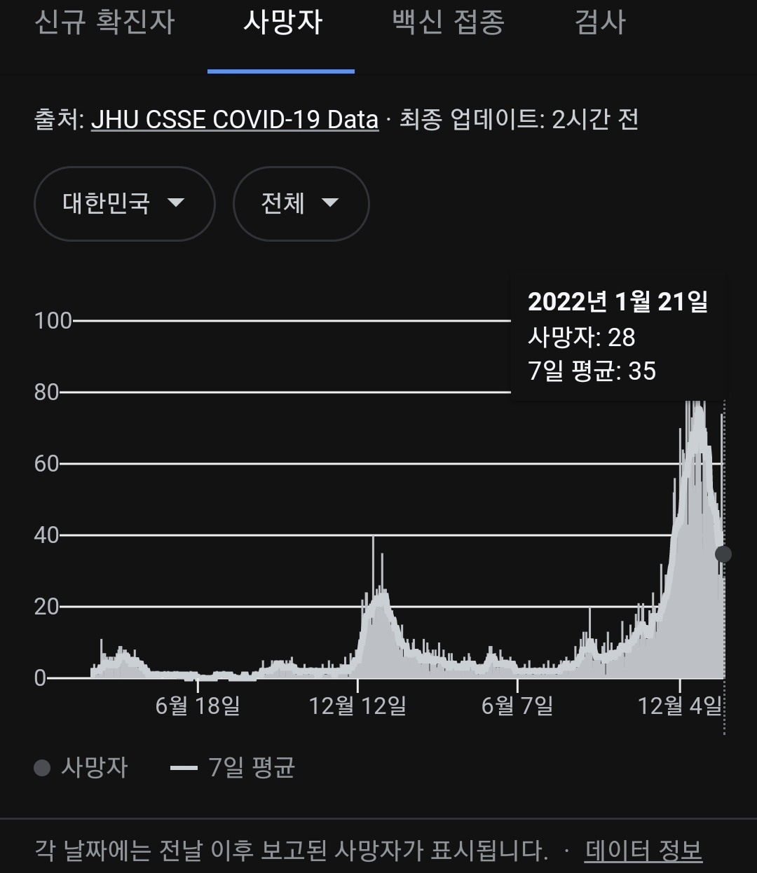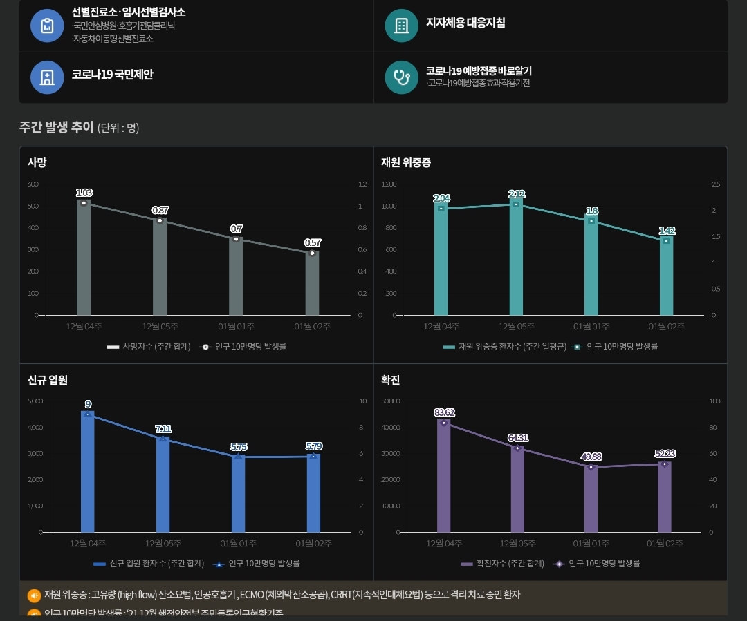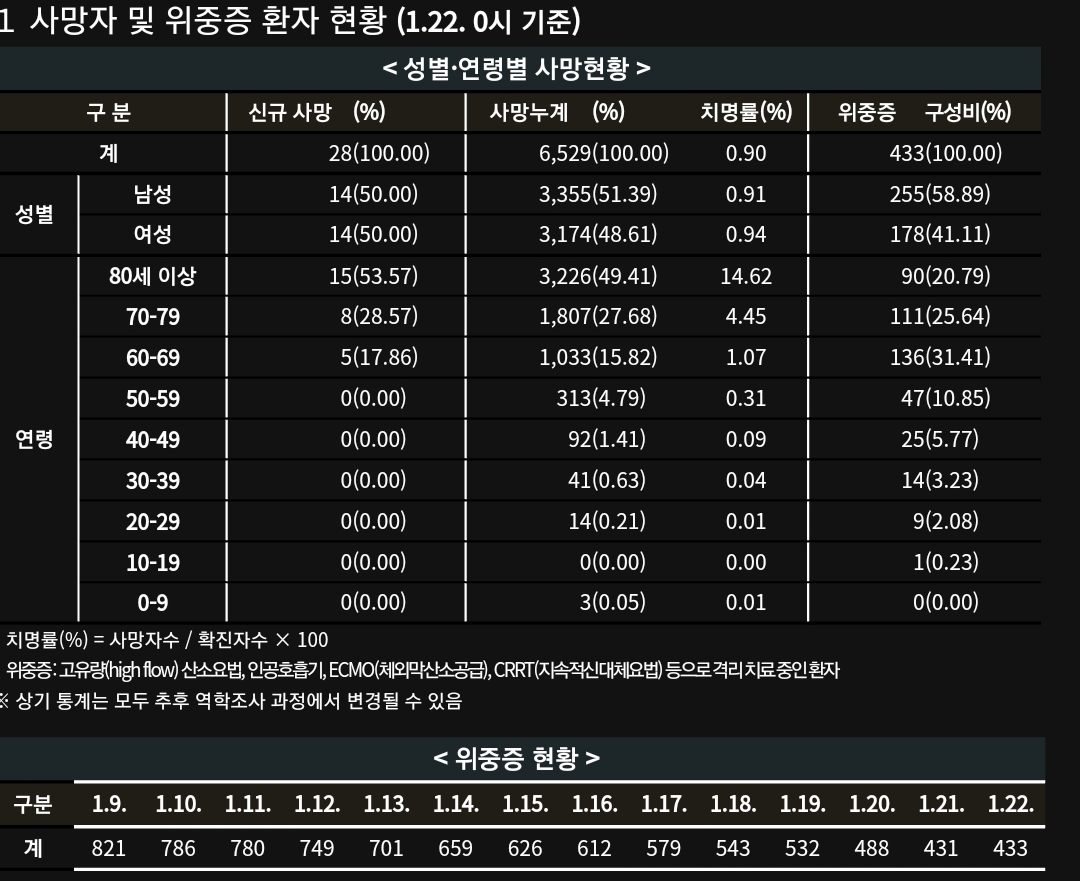 위중증 환자와 사망자