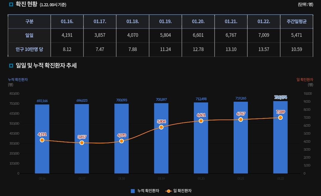 코로나19(2022.1.22. 0시기준): 7009명 본문