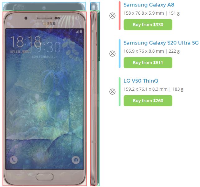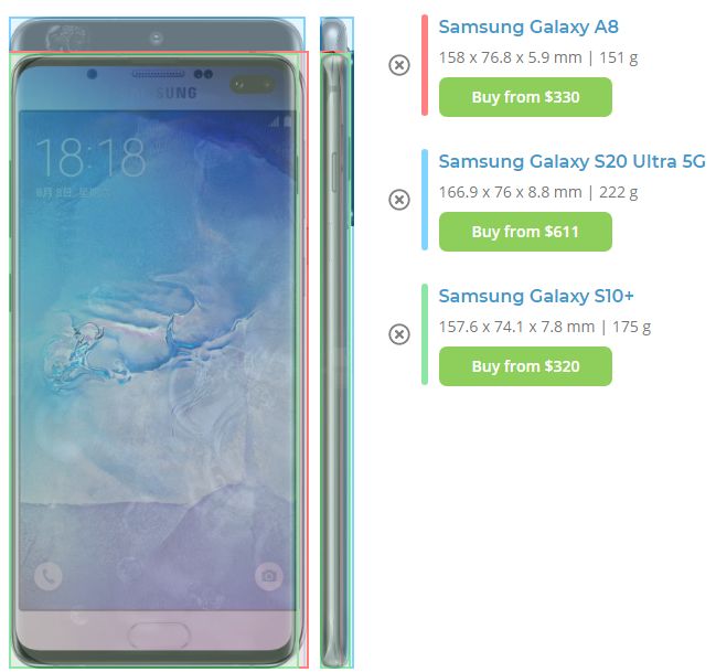 그런데 이거 화면폭은, 엣지디스플레이를 적용하지 않던 시절 갤럭시 S, A시리즈 5.7인치 화면하고 비슷한 모양입니다. 같은 폰아레나닷컴 비교그림입니다.