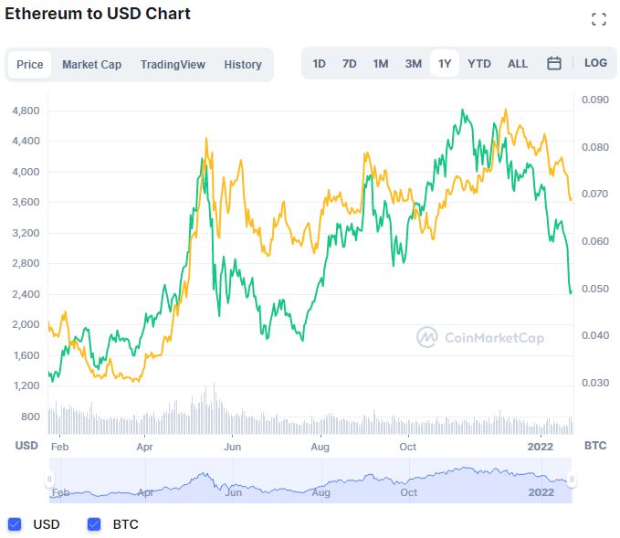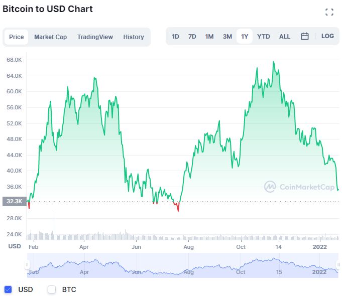 [이더리움·BNB도 전일 대비 17%대 약세, 비트코인 올해만 25% 하락] 비트코인 가격이 3만4000달러선까지 밀렸다. 지난해 7월 하순 이후 최저 수준이다. 미국 금리인상 등 글로벌 유동성 축소 우려가