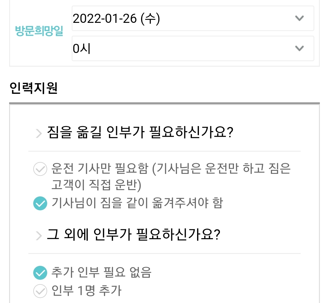 그리고, 주소쓸 때 출발지와 도착지 건물의 층수와 승강기사용가능한지 여부를 입력하게 돼있습니다.