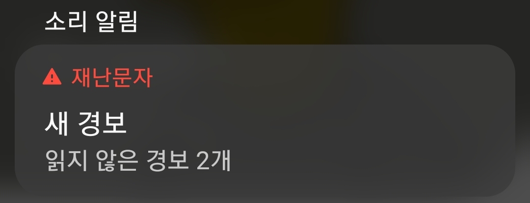 전에는 재난문자가 오면 무조건 가장 상단에 떴습니다.