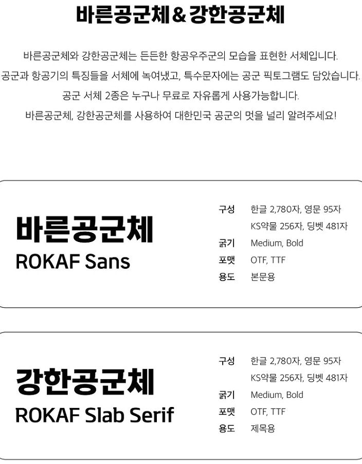 [공군전용서체] 바른공군체, 강한공군체 소개 및 다운로드