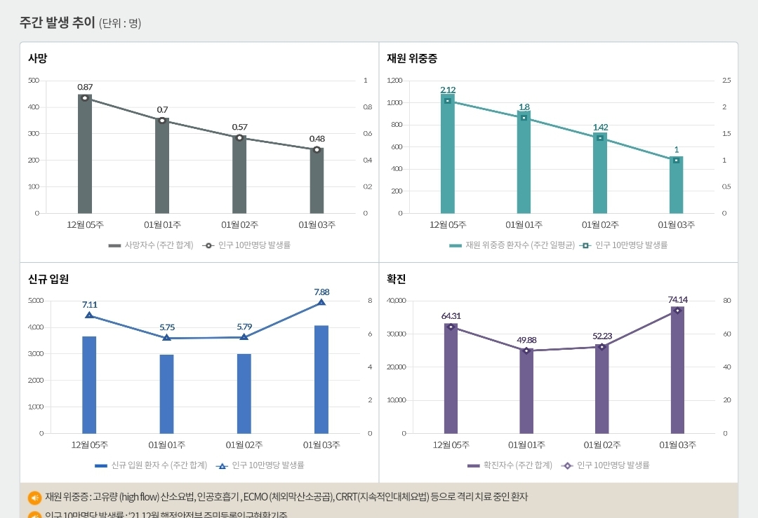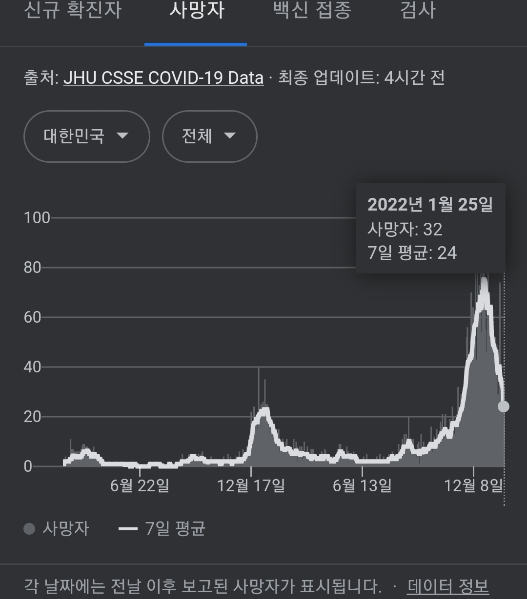 기대대로 치명률이 델타보다 낮기를 바라고, 재택치료와 알약/주사치료제 공급을 충분하게 해서 일일사망자는 지금까지보다 더 안 늘어나면서 집단면역을 달성하는 좋은 결과를 기대하는 게 아마 방침일 텐데요.. 사망자집계는 며칠 후행하는 경향이 있으니까 지켜봐야겠죠.