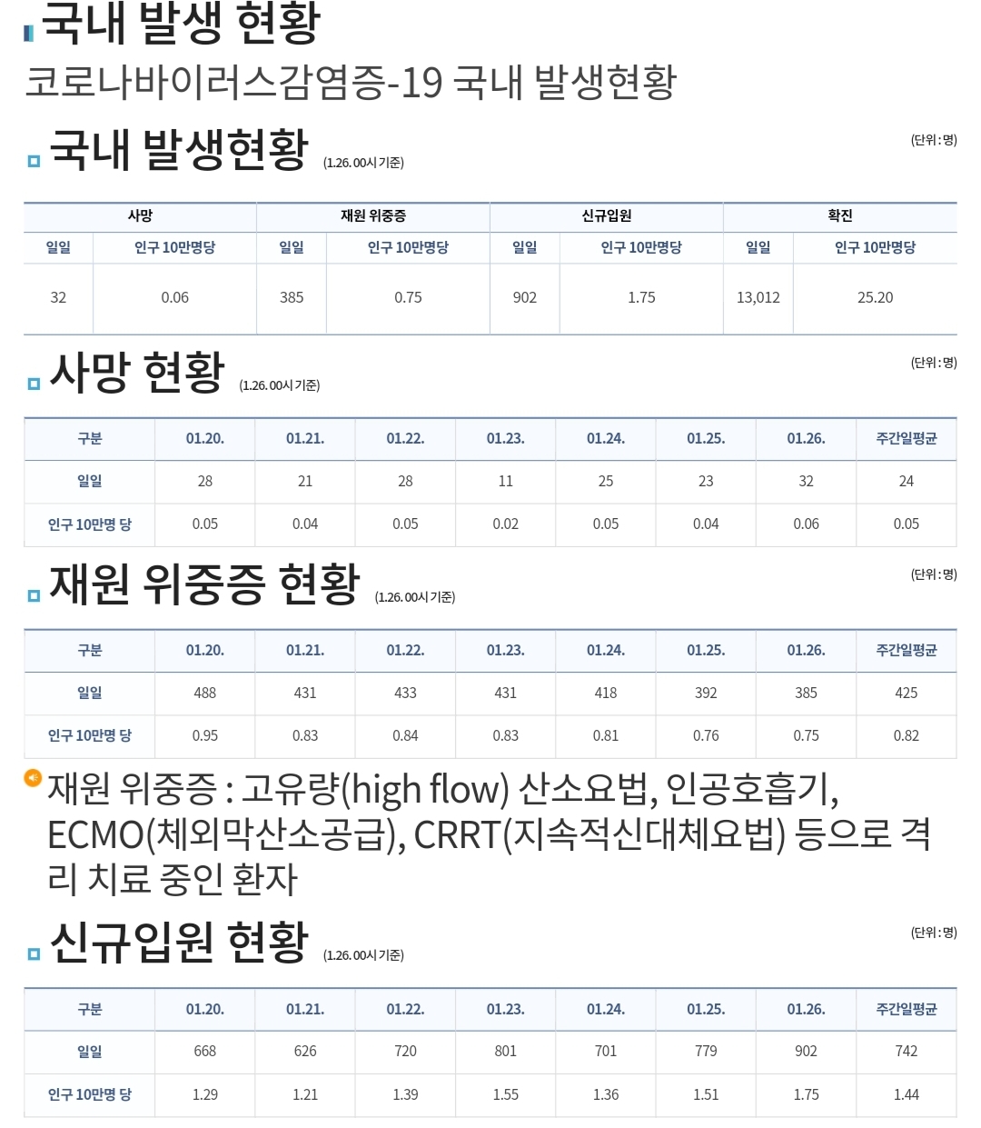 코로나19집계(2022.1.26. 0시기준): 13012명 ★★★ 본문