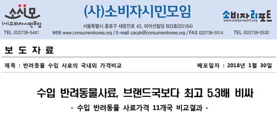 언론매체도 그렇지만 시민단체의 비전문성도, 보도자료를 잘 봐야 할 이유/:/ 반려동물 사료시장은 지속 성장 중(펫 휴머니제이션) 본문