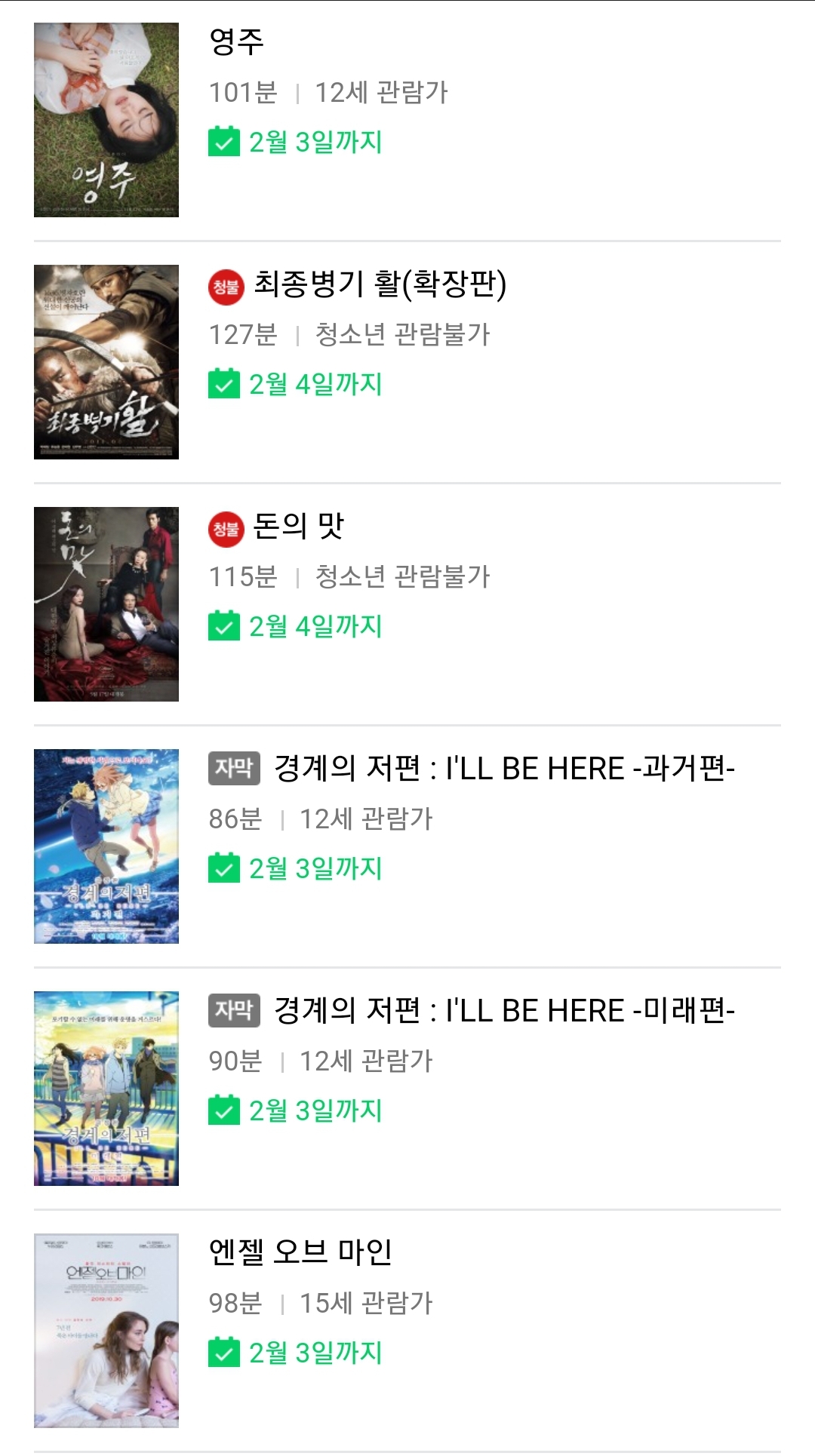 | (네이버 시리즈온 무료영화) 킥복서 더 레전드, 1945:포인트 오브 노 리턴, 미나리, 괴물, 최종병기 활(확장판) 등 (0) | 2022.02.04 |