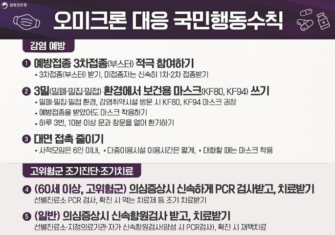 코로나19(2022.1.27) 2월 3일부터 우선순위가 아니면서 방역패스가 필요하면 선별검사소,선별진료소에서 PCR검사대신 항원검사/:/ 오미크론변이 유행과 대응 관련 내용