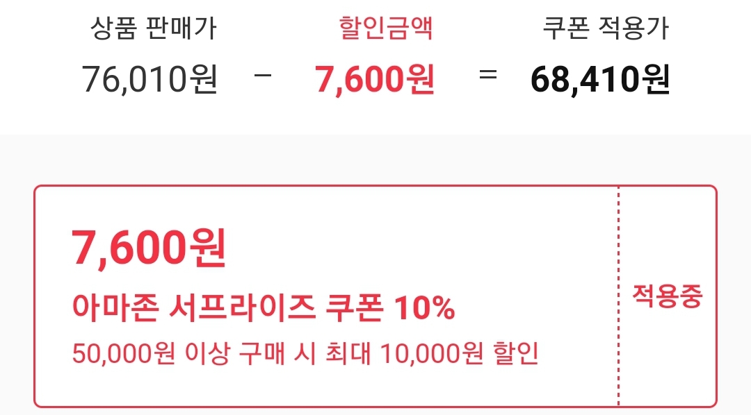 할인은, 먼저 상품페이지에서 아마존 10%서프라이즈쿠폰을 받습니다.