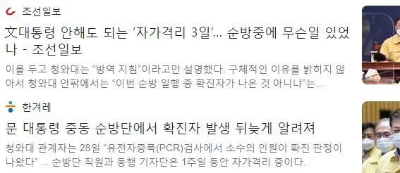 이 나라가, 대통령이 자가격리 중이라고 발표하면 반란이라도 일어날 독재국가인가? 청와대는 그렇게 생각하지는 않겠지? 별 것 아닌 것까지 쓸데없이 숨겨서 국민 스트레스호르몬수치를 올리지 말라고 새로 뽑은 사람이 이번 대통령이 아니었던가? 그런 점에서 그때 정부의 청와대임직원에게 매우 실망했는데, 이번 청와대임직원도 취임 직후부터 그래온 것을 보면, 이것이 386세대 정치권의 고질병인 것 같다. 더는 실망시키지 마라.