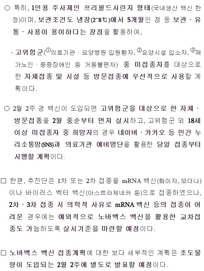 국내사용분 노바백스는 SK바이오사이언스에서 생산.