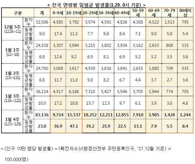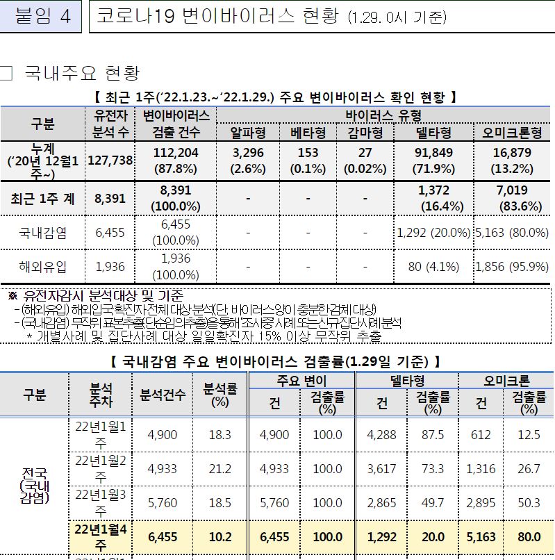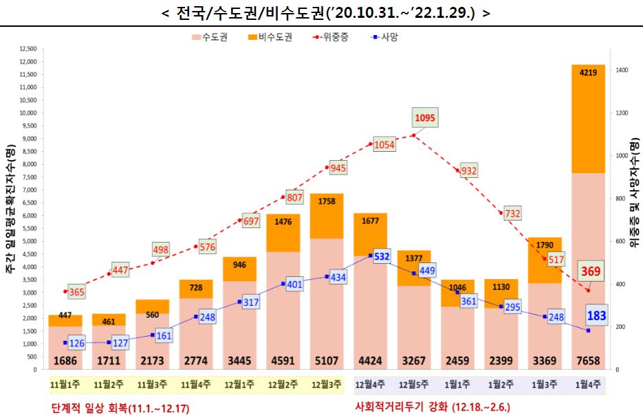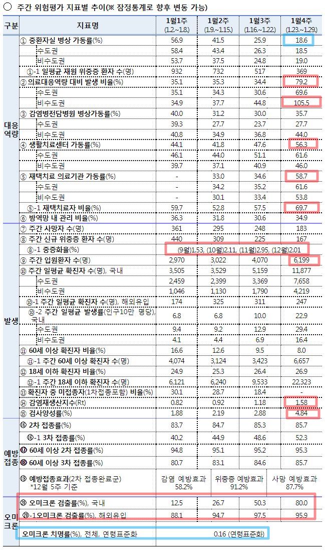 코로나19(2022.1.31) 1월4주(1.23.~1.29.) 주간 위험도 평가: 높음 유지 본문