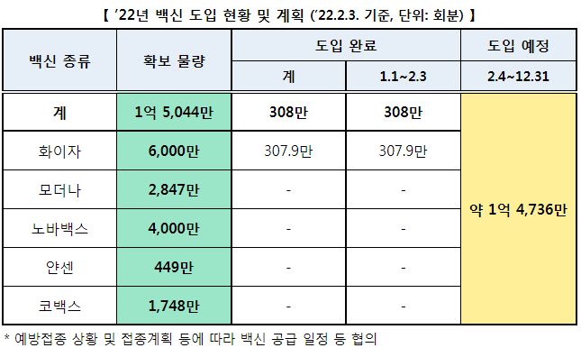 2022년 백신도입계획