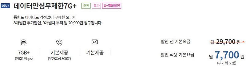 8개월동안 써보기는 괜찮아보이네요. 9개월차부터 20900원이 된다는데 그때는 지금 이 통신사의 다른 프로모션 상품과 비교해 싼 요금은 아니니까 그 전에 번호이동해 다른 상품으로 갈아타는 게 좋을 듯. (언제까지 그런 대안상품이 있을지 모르겠는데, 요즘 점점 좁아지는 느낌입니다)