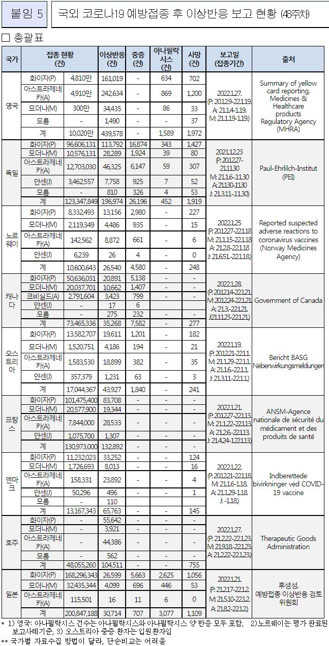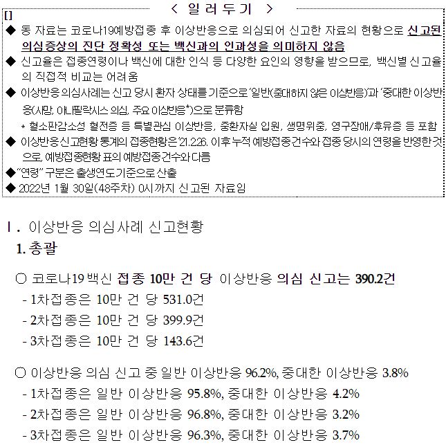 코로나19(2022.2.3) 예방접종 후 이상반응 주간 분석 결과 (48주차) 본문