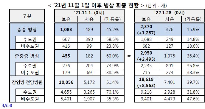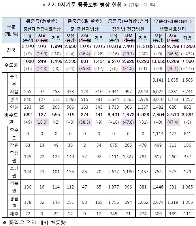 코로나19(2022.2.2, 2.3) 몇 가지 현황 발표 및 계도사항/:/ 병상가동률 및 배정기준, 재택치료현황, 이동량분석 본문