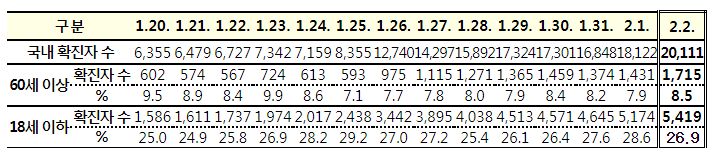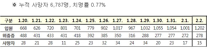| 코로나19집계(2022.2.2. 0시기준): 20269명 (0) | 2022.02.03 |