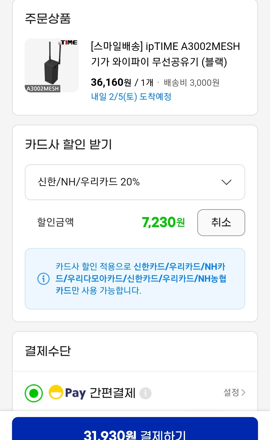 오늘 블랙 프라이데이쿠폰+ 스마일배송쿠폰+ 5대카드할인적용가입니다. 카드할인은 지금 3개카드만 남았네요.
