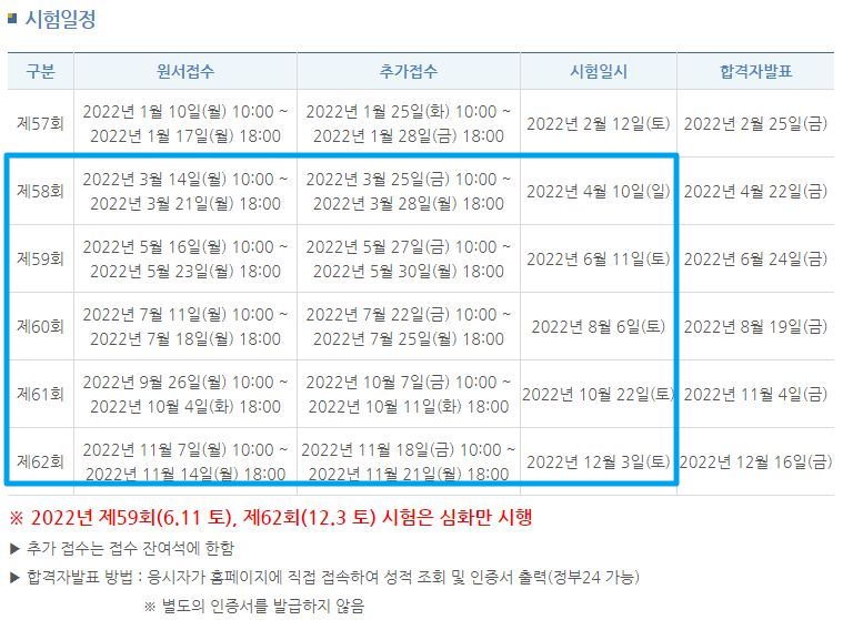 2022년 시험일정