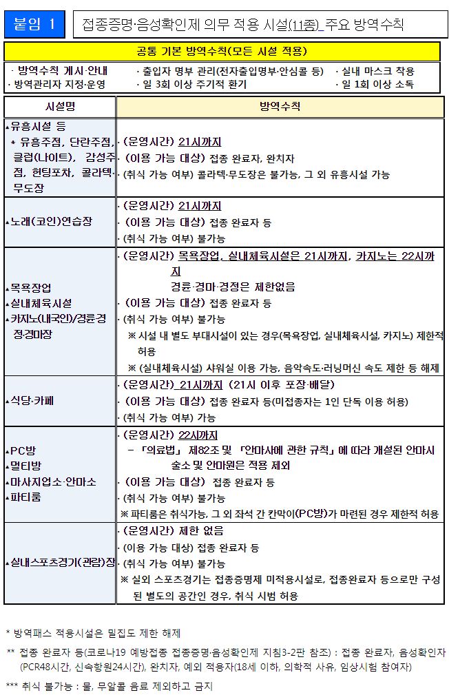 여기에 해당없는 사람은 백신안맞으면 방역패스적용시설 출입금지.
