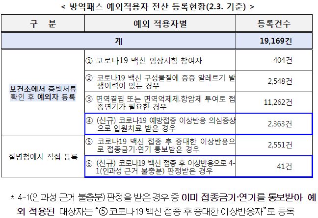 ㅡ 방역패스 에외확인서 전산화. 2월 3일 기준 약 1.9만 명이 등록.