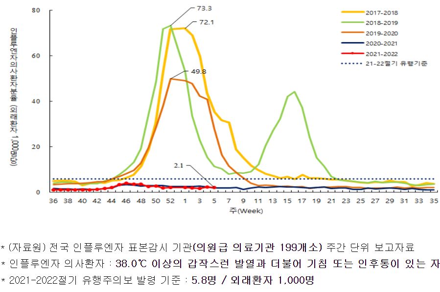 ㅡ 인플루엔자 및 급성호흡기감염증.. 유행기준미만 안정세. 마스크의 공??
