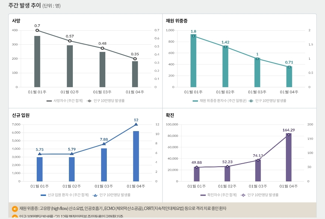 | 코로나19집계(2022.2.6) 주간 주요 방역지표 동향 분석(1.30.~2.5.)/:/ 10일→7일은 아직 이른 게 아닐까. (0) | 2022.02.06 |