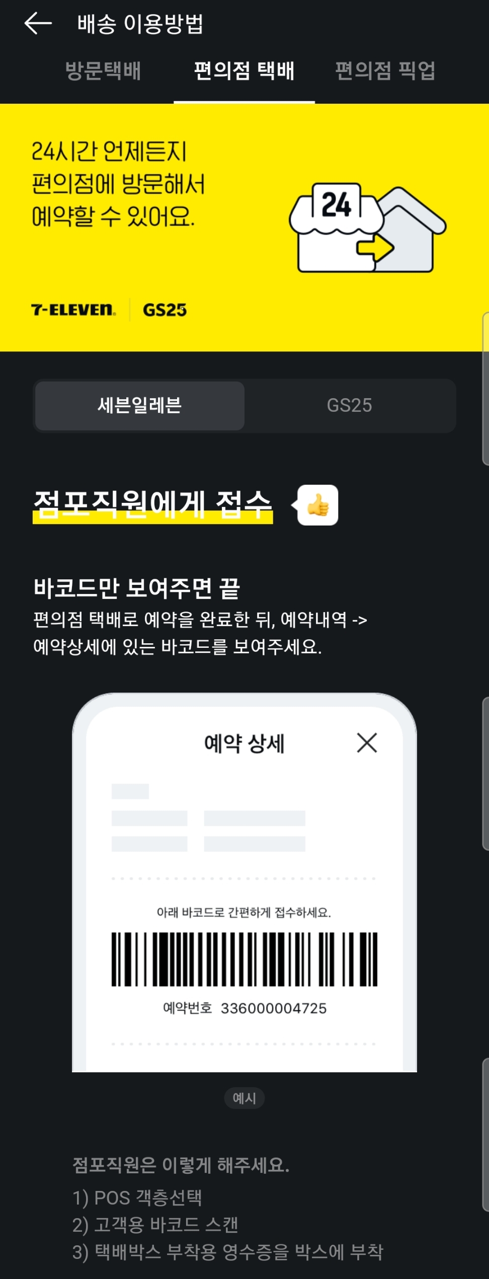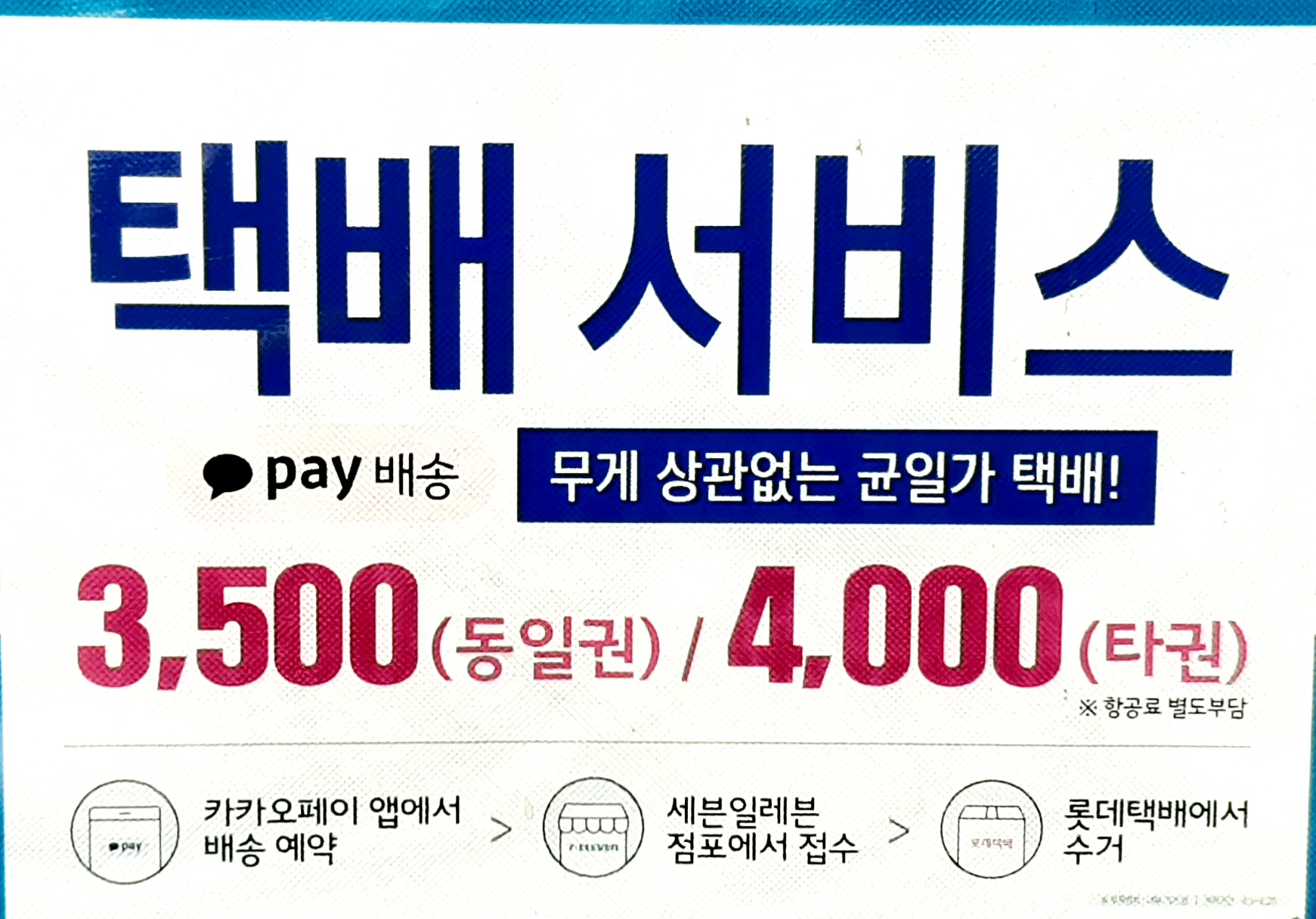 세븐일레븐 택배(카카오페이 x 7-Eleven): 동일권 3500, 타권 4000 (중량무관) 본문