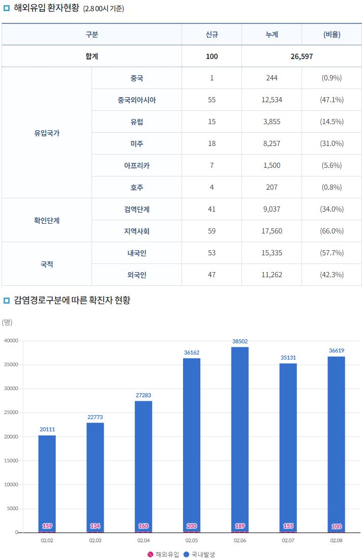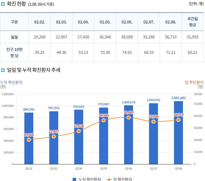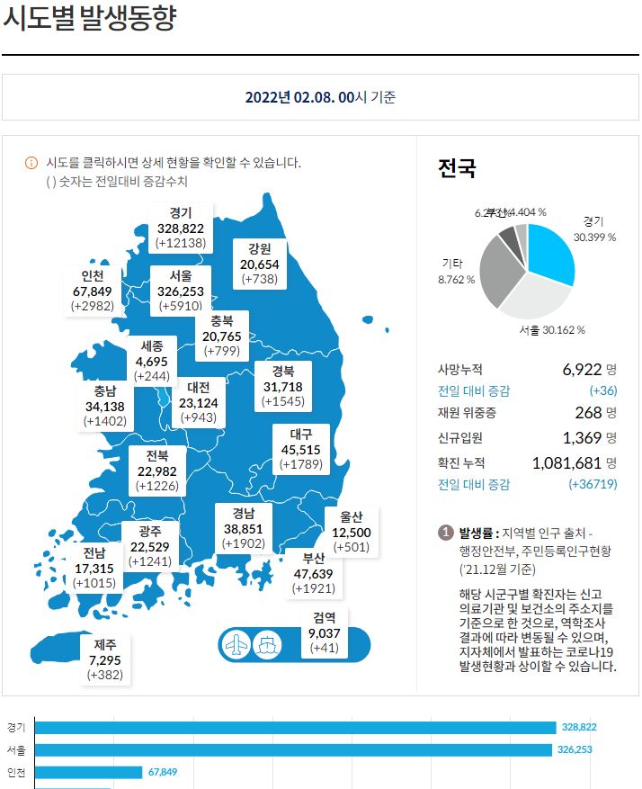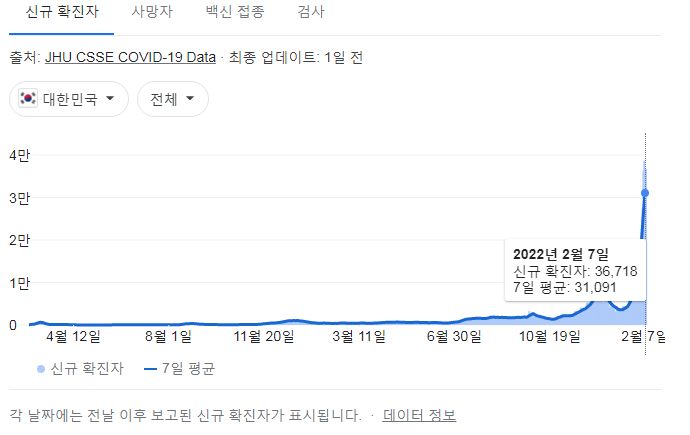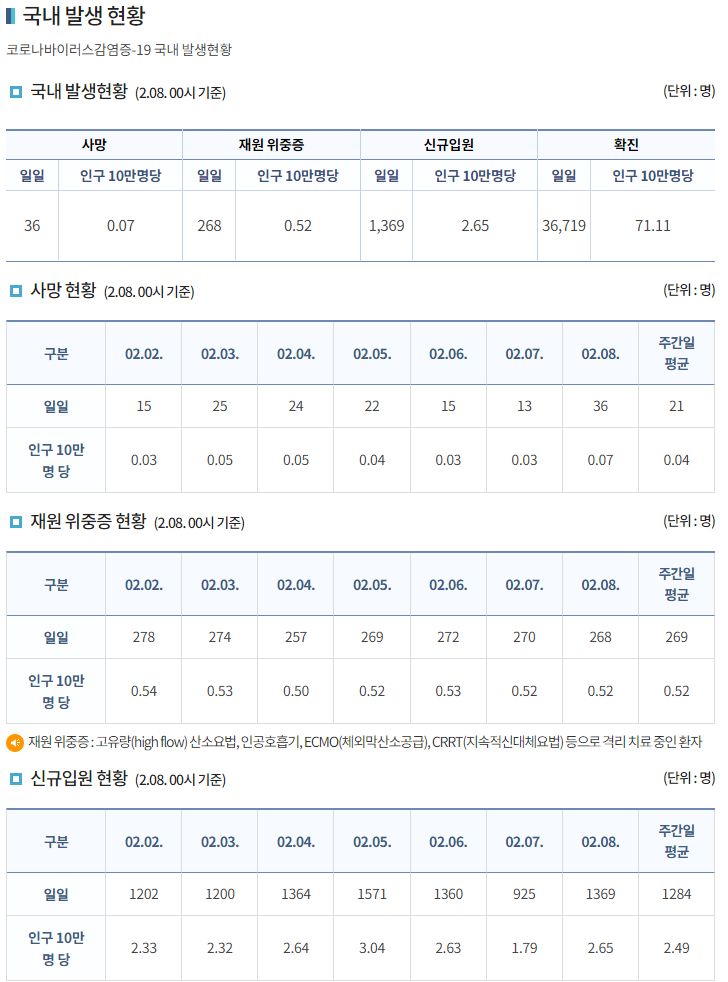 코로나19집계(2022.2.8. 0시기준): 36719명 본문